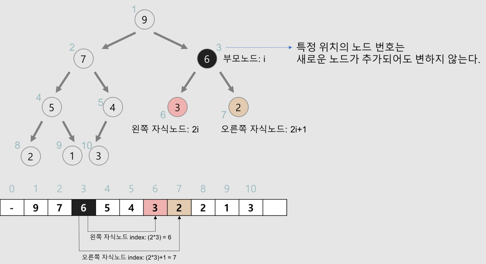 - 오른쪽 자식 Index = (부모 Index * 2) + 1